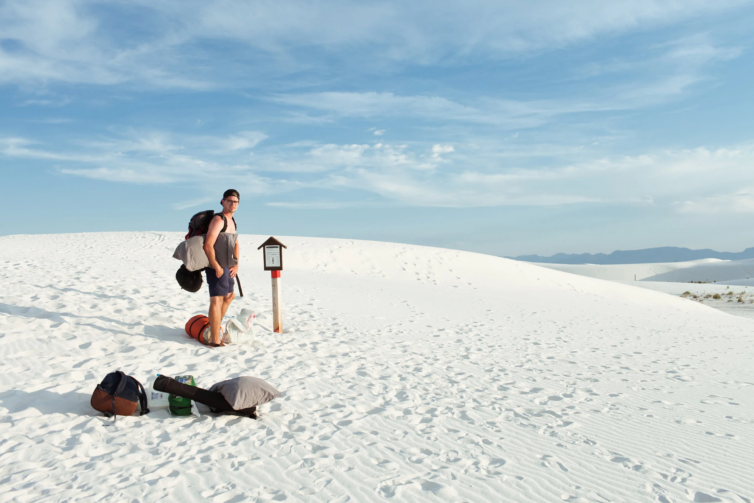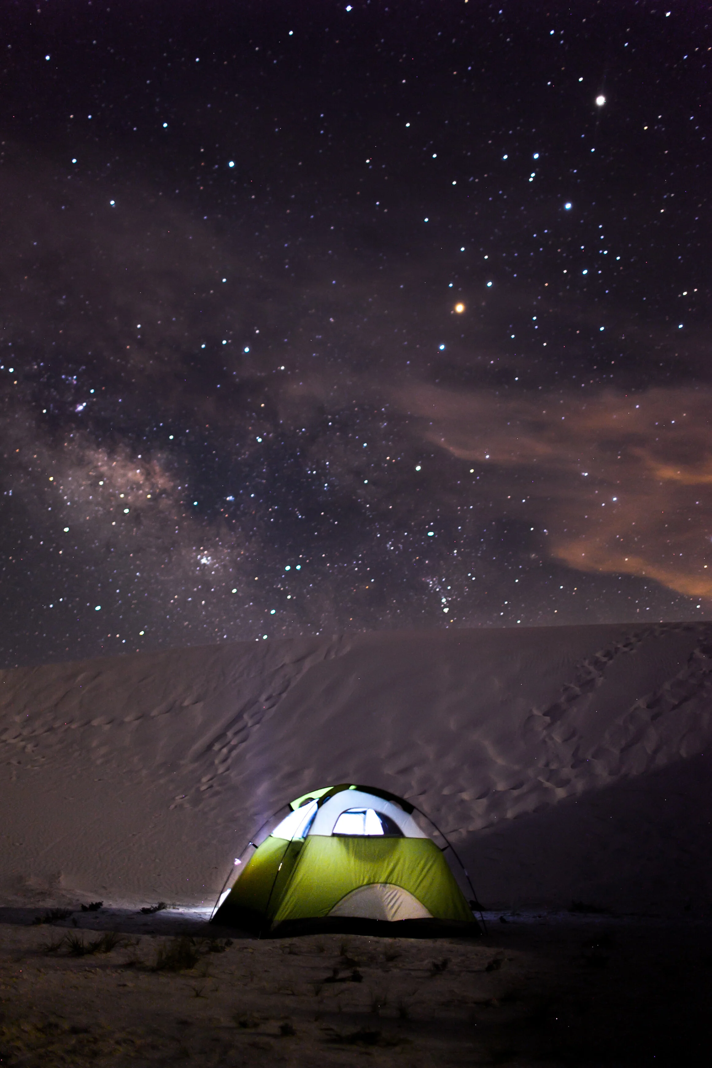 We got up to go to the bathroom around 3 in the morning and were greeted by an incredible view of the milky way. It's almost like mother nature didn't want us to sleep so we could enjoy the view. I got out my tripod and took a few photos and then went to bed. We woke up around 7:30, packed up our site, and started hiking back to the car, running on about 3-4 hours of sleep. It was rough, but I would do it all over again for the amazing view and the sense of solitude we felt amongst the massive white dunes.