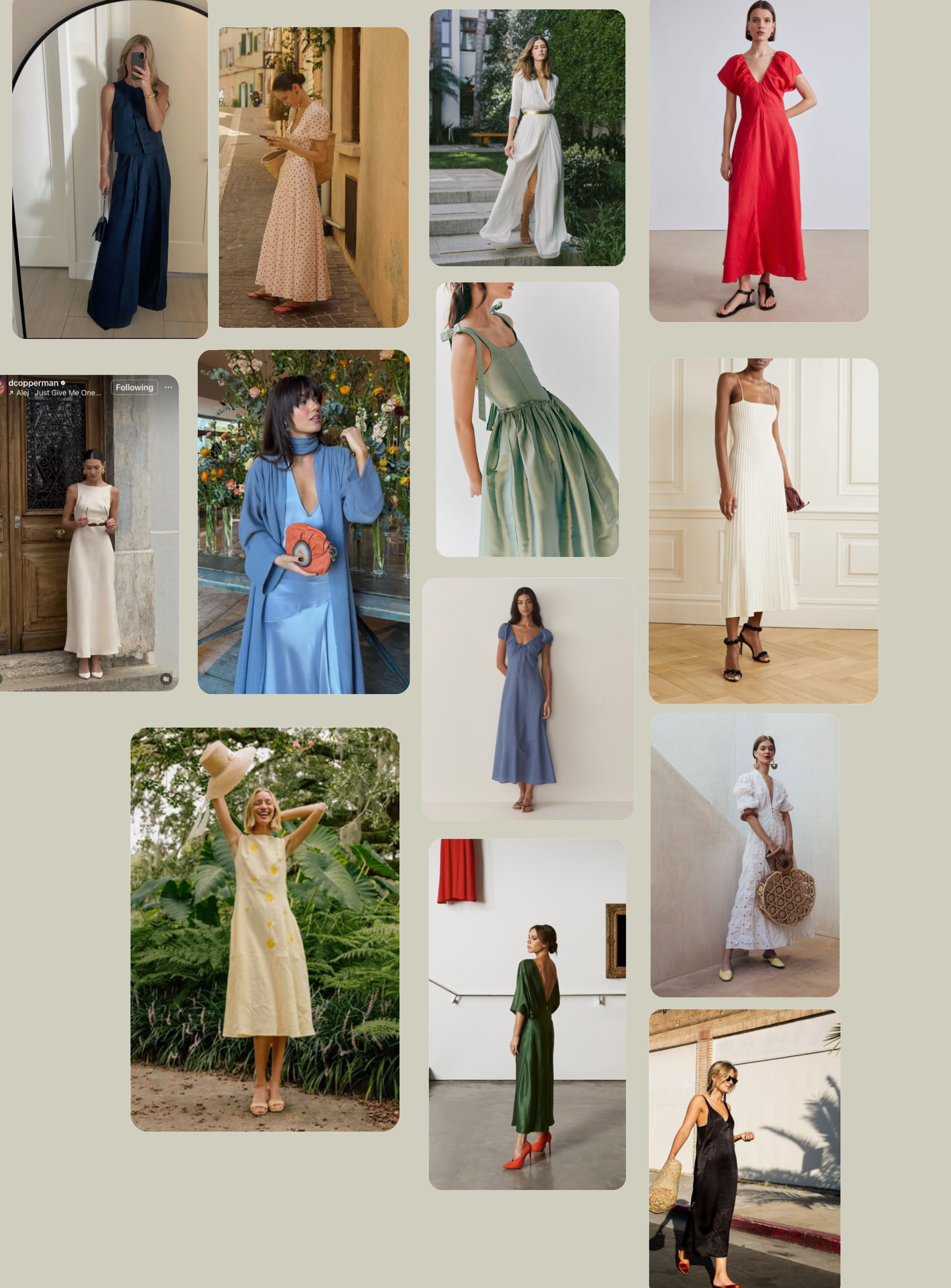 Long flowy or silky slip dresses that are timeless photograph beautifully. Look for dresses that will show texture and movement.